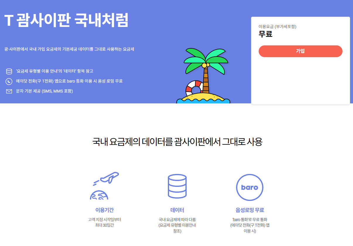 - LTE 10GB 요금제 → 괌에서도 10GB 사용 가능, 초과 시 추가 요금 부과