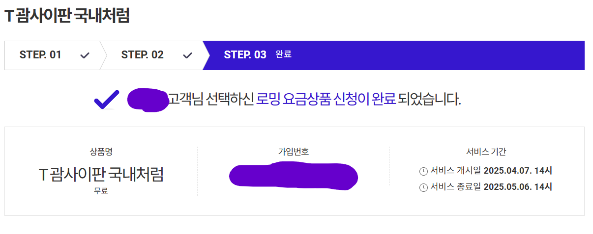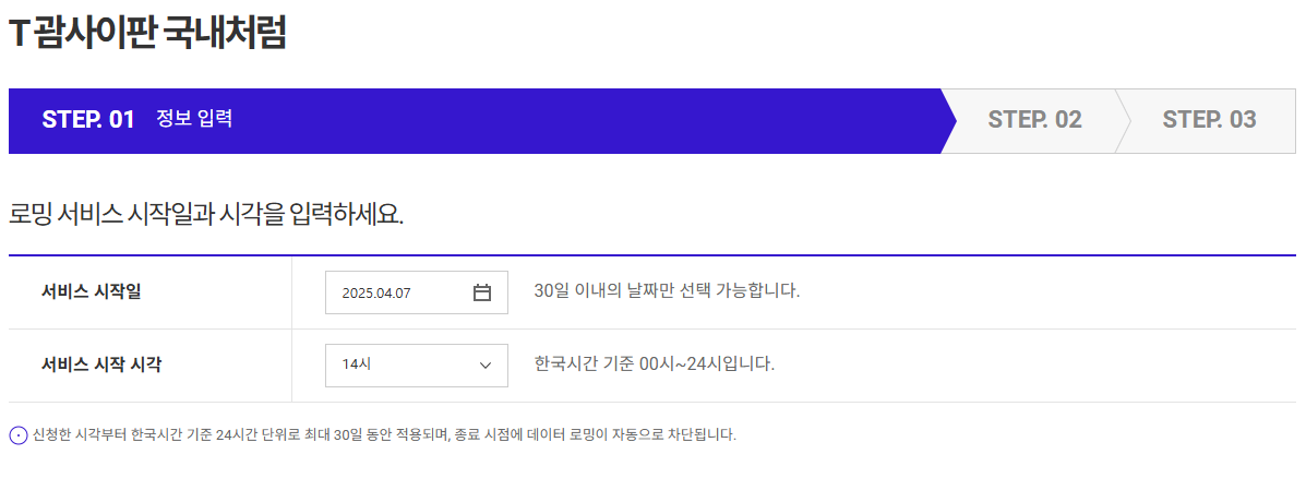 ✔ 장기간 체류 시 정책 변경 가능성 있음 (SKT 고객센터 확인 권장)